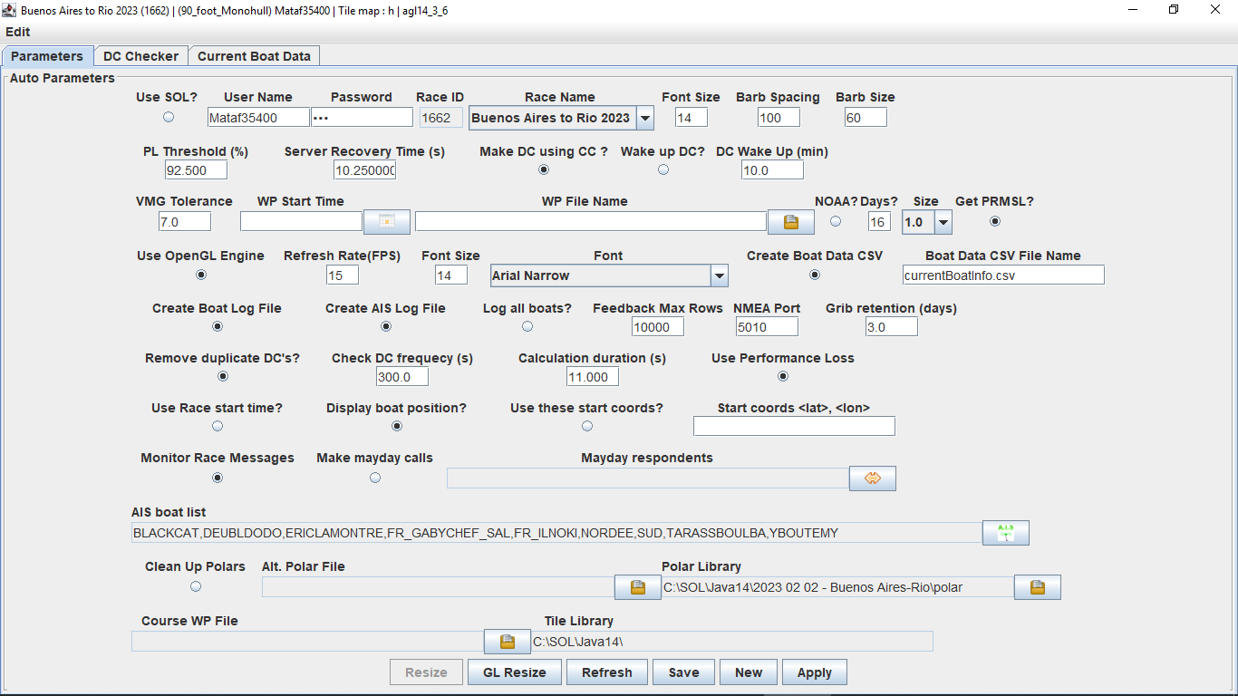 - Lancer le programme AG14.bat. Une fenêtre CMD s’ouvre, puis celle ci-dessous (exemple d’une régate courue)